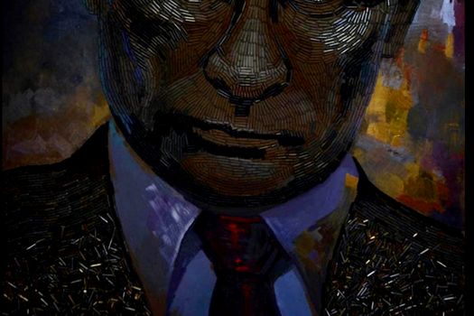 Rece, sfidător, gol. Este modul în care preşedintele Rusiei este înfăţişat. Ineditul tablou făcut din gloanţe poartă numele „Faţa războiului” (Face on war).