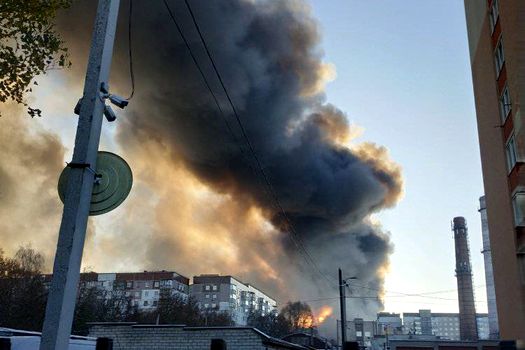 Un incendiu de proporții a fost semnalat și în Lviv, iar imaginile postate pe Telegram arătau un nor uriaș de fum deasupra orașului la răsăritul soarelui.