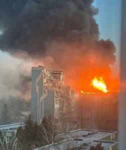 Fotografiile postate pe rețelele de socializare arătau mai multe etaje ale unei clădiri înalte complet distruse.În prezent, nu există informații despre victime.