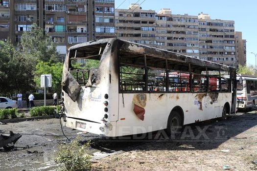 Fotograful AFP de la faţa locului a văzut mai multe vehicule arse, între care un autobuz, şi numeroase maşini parcate cu geamurile sparte. Serviciile de securitate au izolat zona.