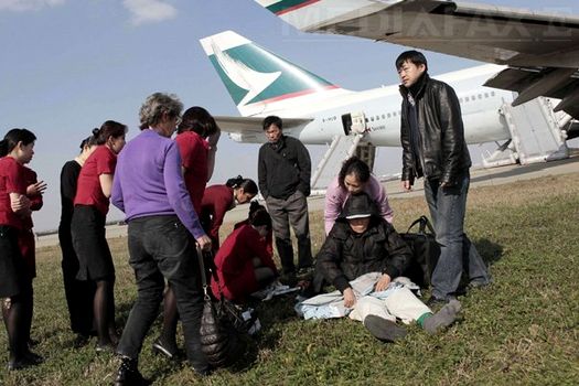 Incidentul a avut loc pe aeroportul internaţional Pudong chiar înainte de decolarea aeronavei cu destinaţia Hong Kong. Avionul avea la bord 351 de pasageri şi 19 membri ai echipajului.