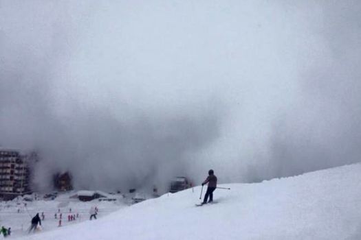 Zăpada acumulată în Masivul Jumeaux a căzut brusc în staţiune, exact la capătul pistei de schi, plină de turişti.