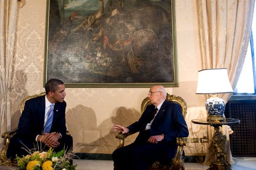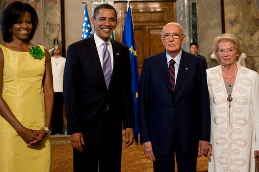Preşedintele american va începe vizita în Italia printr-o întâlnire protocolară cu omologul său italian Giorgio Napolitano, la Palatul Quirinale din Roma.