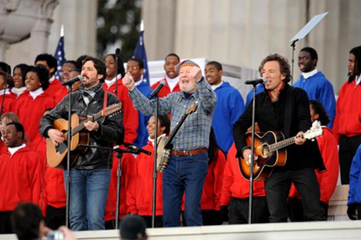 Vocea lui Bruce Springsteen s-a auzit deasupra scărilor de la Memorial, locul unde Martin Luther King, liderul de culoare asasinat, pronunţase în 1963 faimosul său discurs "I have a dream" (Am un vis) asupra uniunii raselor.