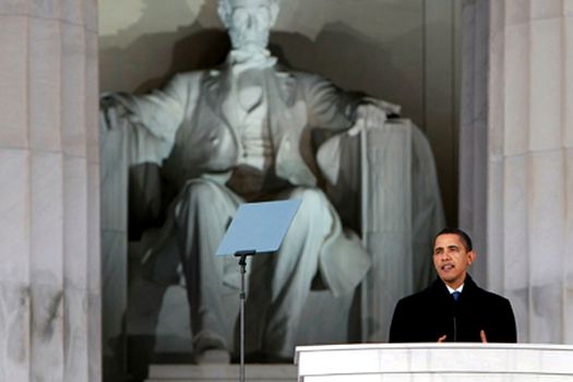 Îmbrăcat într-un palton negru, Barack Obama a apărut surâzător deasupra scărilor de la Lincoln Memorial, transformat în scenă de concert rock, însoţit de soţia sa, Michelle, îmbrăcată într-un elegant mantou crem. În faţa lor, o mulţime imensă şi compactă ocupa zona Mall, peluza vastă care se întinde până la Capitoliu, sediul Parlamentului unde Barack Obama îşi va depune jurământul marţi.