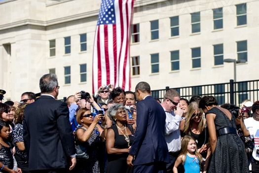 Duminică, Obama a mers succesiv la New York, pentru o ceremonie la locul unde se înălţau turnurile gemene ale World Trade Center, la Shanksville în Pennsylvania, locul unde s-a prăbuşit zborul 93 al United Airlines ai cărui pasageri au opus rezistenţă teroriştilor, şi la Pentagon, în apropiere de Washington, lovit şi el de unul dintre cele patru avioane deturnate de Al-Qaida.