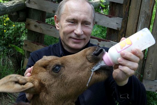 Pe un grup pro-putinist, poţi găsi poze care îl arată hrănind un pui de căprioară sau înconjurat de fete tinere în costum tradiţional, şi mii de postări care îl laudă pe liderul rus.