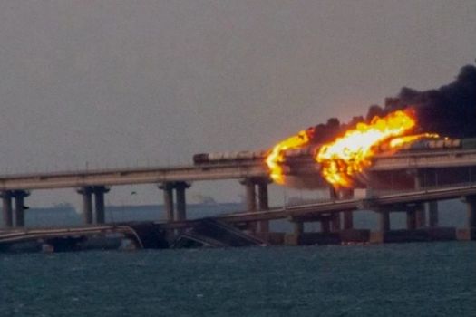 Prima pagină » Știri externe » Podul Kerci, care leagă Crimeea de Rusia, a fost lovit de o explozie puternică. O parte din el s-a prăbuşit