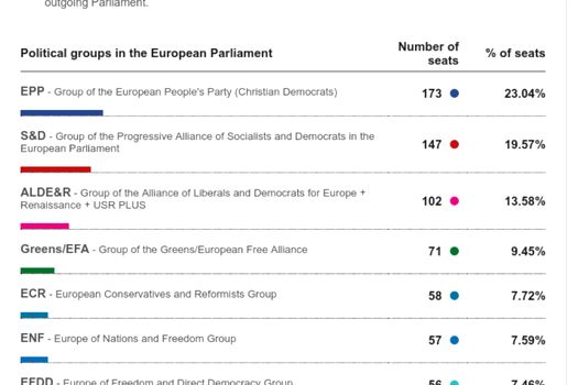 Grupul politic Alianţa Liberalilor şi Democraţilor pentru Europa (ALDE), Renaşterea şi USR PLUS probabil a obţinut 101 mandate în PE, iar Grupul Verzi / Alianţa Europeană Liberă este creditat cu 70 de locuri.