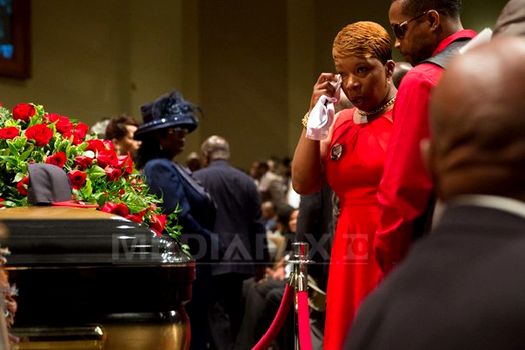 Printre persoanele prezente la înmormântare se numără activistul pentru drepturi civice Al Sharpton, trei oficiali de la Casa Albă şi căpitanul de poliţie Ron Johnson, care a gestionat problema violenţelor izbucnite la Ferguson.