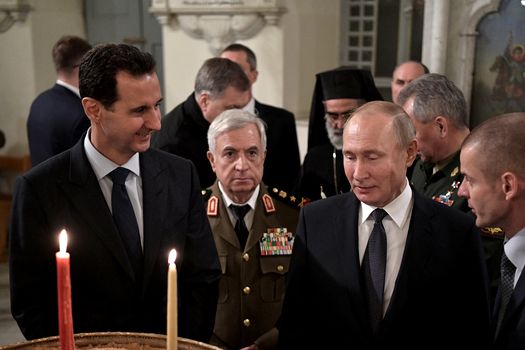 Cei doi lideri s-au îndreptat apoi către cea mai veche biserică ortodoxă din Siria, Catedrala Adormirea Maicii Domnului, construită în secolul al II-lea, unde au fost întâmpinaţi de Ioan X, Patriarhul Antiohiei. Acesta i-a mulţumit lui Putin pentru ajutorul oferit de armata rusească în Siria, în lupta împotriva teroriştilor. Ioan X a descris ţara drept un loc al toleranţei, „în care cei de religii diferite – atât creştini, cât şi musulmani – coexistă paşnic şi se bucură de aceleaşi drepturi.” Preşedintele rus i-a oferit în dar patriarhului o icoană a Fecioarei Maria, pictată în Rusia.
