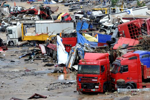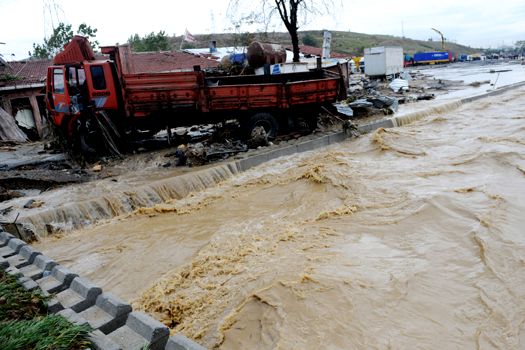 Apa, care a acoperit autostrada pe aproape un kilometru, a luat camioane staţionate într-o parcare supraterană din cartierul Basaksehir, surprinzând conducătorii care petreceau noaptea în cabina vehiculului lor, a constatat un fotoreporter al AFP, care a asistat la scoaterea a două corpuri.