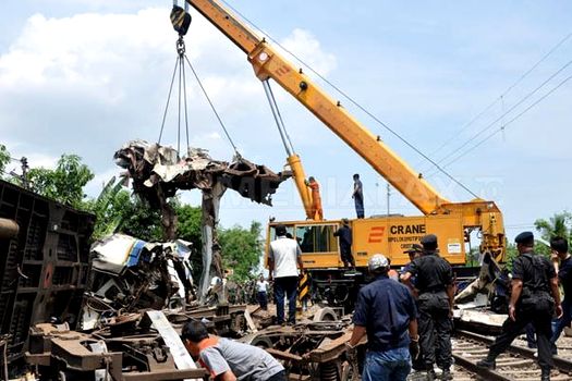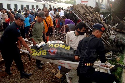 Conform oficialilor prezenţi la locul accidentului, un tren de călători care se îndrepta spre Surabaya a lovit partea din spate a altei garnituri staţionate, care urma să plece spre Semarang.