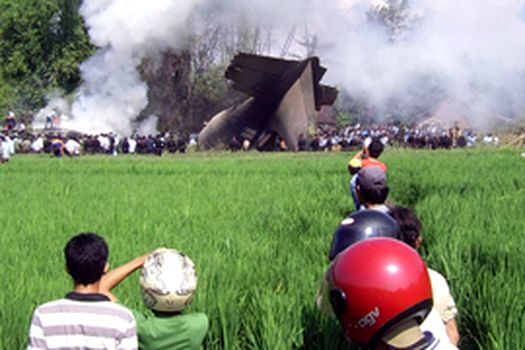Avionul, un Hercules al forţelor aeriene, având la bord 112 persoane, s-a prăbuşit într-o orezărie, apoi a luat foc, în jurul orei locale 06.30 (02.30 ora României), în apropiere de oraşul Magetan, la circa 160 de kilometri est de Yogyakarta, potrivit forţelor aeriene.