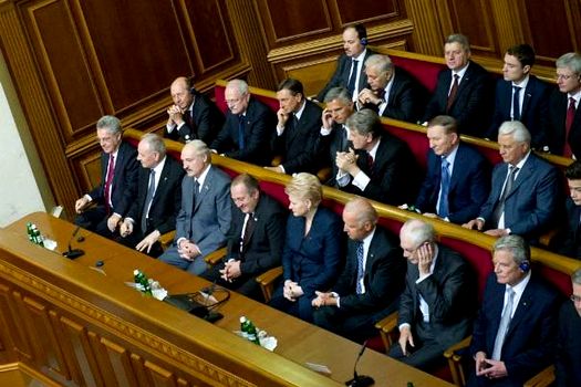 La ceremonie au fost prezenţi vicepreşedintele american Joe Biden, preşedintele Consiliului European Herman Van Rompuy şi numeroşi şefi de stat şi de guverne din Europa de Est, printre care şi preşedintele României, Traian Băsescu, preşedintele polonez Bronislaw Komorowski şi preşedinta lituaniană Dalia Grybauskaite.