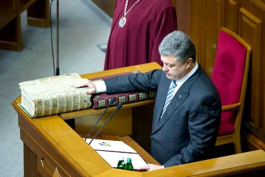 Ales pe 25 mai în primul tur al scrutinului prezidenţial, cu 54,7% din voturile exprimate, miliardarul prooccidental, în vârstă de 48 de ani, a depus jurământul, în Parlament, pe Constituţie şi Evanghelie, şi a fost declarat al cincilea preşedinte al Ucrainei independente.