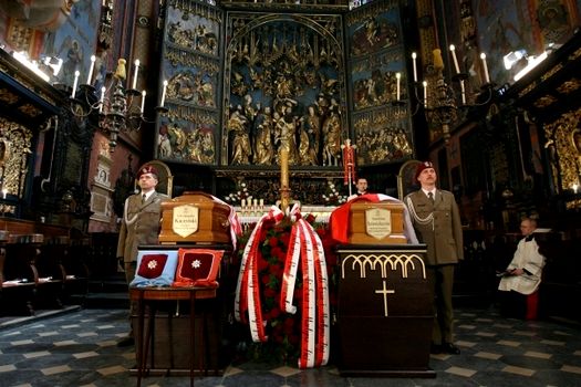 În onoarea cuplului prezidenţial au fost trase 21 de salve de tun, după ce sicriele au fost coborâte într-o criptă aflată în apropierea mormântului lui Jozef Pilsudski, părintele independenţei poloneze.