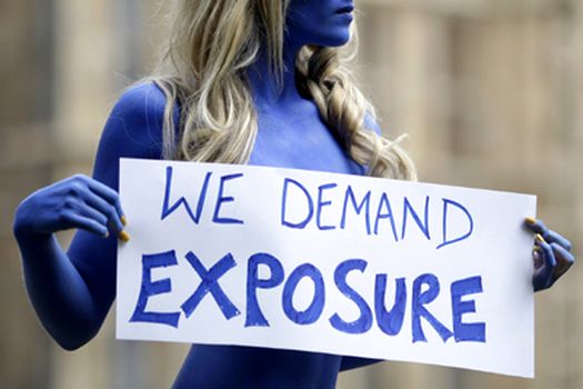 Partidul paneuropean Libertas a angajat-o joi pe fotomodelul Amy Diamond să stea goală în faţa Palatului Westminster vopsită în culorile Uniunii Europene şi cu pancartă cu mesajul "Cerem expunere". Potrivit EUObserver, formaţiunea Libertas are nevoie de susţinere în Marea Britanie unde este cotată la mai puţin de un procent. Acţiunea face aluzie la scandalul cu privire la cheltuielile din Parlamentul britanic care s-a extins în politica europeană.