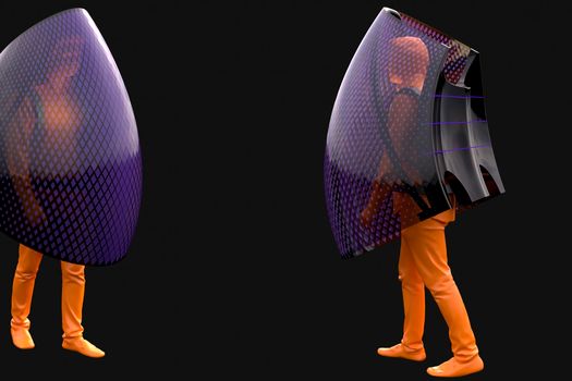 Costumul este făcut din fibră de carbon, iar atunci când este deschis părţile laterale se întind precum aripile unui liliac. Fire încălzite sunt incorporate în suprafaţa de plastic a costumului şi degajă o temperatură suficient de mare pentru a ucide orice element patogen. Se creează astfel un mediu steril, în interior, pentru cel care poartă costumul.