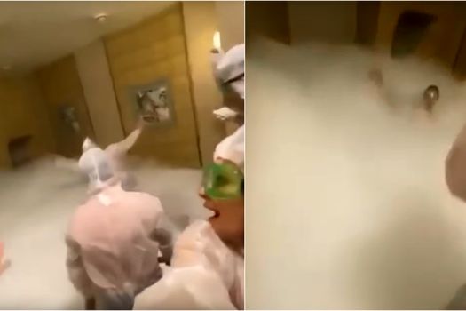 Circa 25 de kilograme de gheaţă carbonică au fost turnate în piscină, după ce oaspeţii tinerei, care îşi sărbătorea a 29-a aniversare, s-au plâns că este prea cald. Gheaţa a fost folosită şi pentru a crea „un efect special” dramatic.