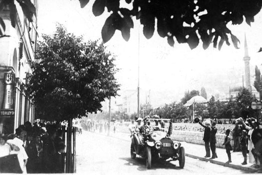Arhiducele Franz Ferdinand şi soţia sa, la Sarajevo, cu puţin timp înainte să fie asasinaţi.