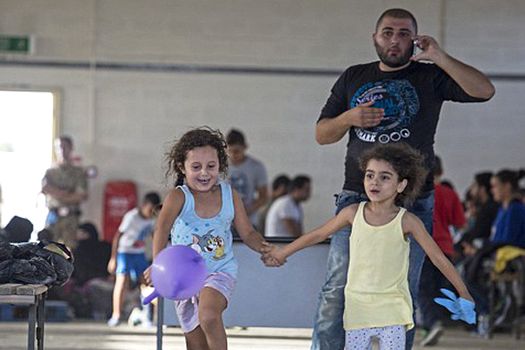 În ciuda disputelor diplomatice provocate de acest incident, niciuna dintre părţi nedorind să îşi asume responsabilitatea pentru refugiaţi, copiii se simt în siguraţă şi zâmbesc fericiţi în noul lor loc de „joacă”, un hangar pentru aeronave, în care şi-au perecut noaptea împreună cu părinţii, relatează