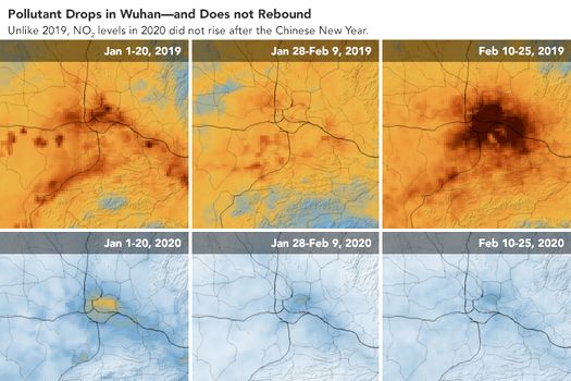 Agenţia spaţială a menţionat că scăderea nivelului de poluare a aerului a coincis cu restricţia impusă activităţilor de transport şi din fabrici, milioane de oameni intrând în carantină.