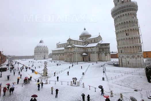 Şi în Italia au fost înregistrate căderi de zăpadă neobişnuite în Toscana, dar şi la Roma, Neapole sau Capri. În nordul ţării, zborurile de pe aeroportul Florenţa sunt anulate până la ora 16.00 GMT (18.00, ora României), iar aeroportul din Pisa a întrerupt zborurile până la ora 15.00 (17.00, ora României).