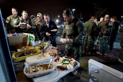 În timp ce unii poliţişti îi îndemnau pe americani, adunaţi în grupuri din ce în ce mai mari, să se întoarcă la casele lor, alţii zâmbeau mulţimilor care îi aclamau şi aplaudau, acceptând să se fotografieze cu ei.