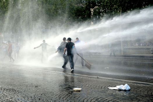 În centrul Parisului s-au înregistrat confruntări între grupuri de protestatari şi forţele de ordine, care au utilizat gaze lacrimogene. Protestatari violenţi au forţat un baraj al forţelor de ordine şi au pătruns pe Bulevardul Champs-Élysées.