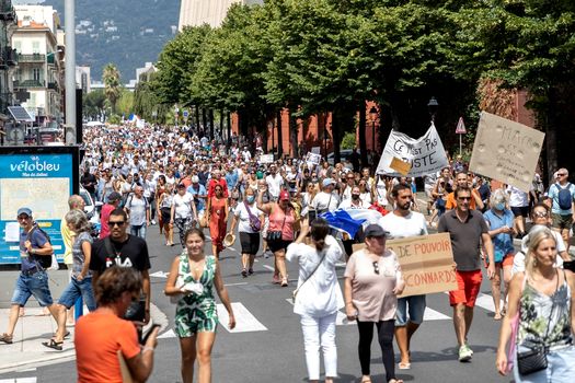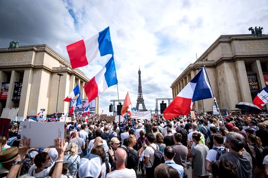În Franţa au avut loc în ultimele zece zile o serie de proteste faţă de hotărârile preşedintelui Emmanuel Macron de a institui obligativitatea vaccinării pentru personalul medical care intră în contact cu persoane vulnerabile la coronavirus şi de a extinde utilizarea Certificatului Covid-19. Deciziile controversate au generat dispute politice şi juridice.