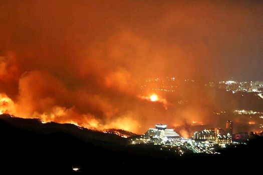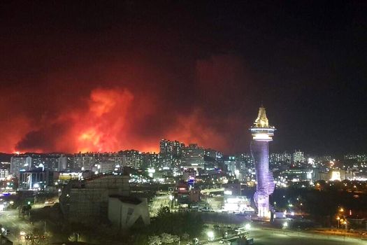 Peste 500 de persoane au fost evacuate din casele lor din oraşul Gangneung din estul Coreei de Sud. Iniţial, incendiul s-a extins cu ajutorul vântului puternic, dar ulterior ploaia i-a ajutat pe pompierii trimişi la faţa locului.