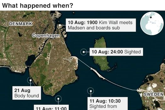 În 11 august, au fost demarate operaţiunile de căutare a submarinului Nautilus care dispăruse în strâmtoarea Oresund ce desparte Danemarca de Suedia, cu două persoane la bord. Poliţia daneză considera că submarinul a fost scufundat în mod deliberat de Madsen, care a fost salvat înainte de a fi arestat.