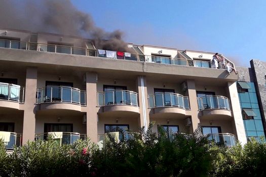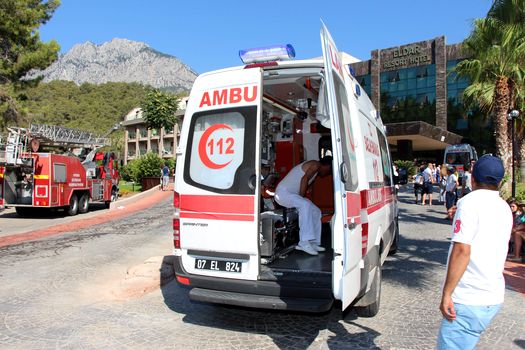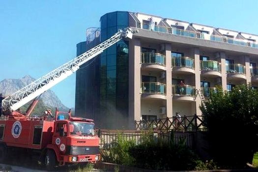 Incendiul a izbucnit sâmbătă dimineaţă în bucătăria Hotelului Eldar Resort, situat în zona Kemer, în districtul Antalya.