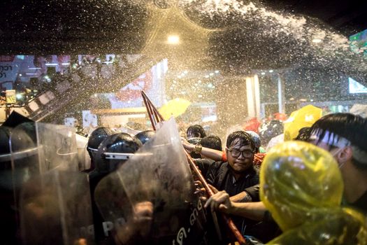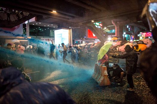 Jurnaliştii de la Reuters au spus că apa folosită asupra protestatarilor conţinea substanţe chimice care o fac înţepătoare. Organizatorii au spus protestatarilor să se disperseze la mai mult de trei ore după ce s-au adunat.