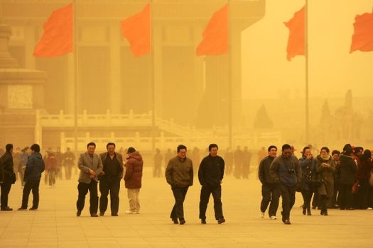 Furtunile de nisip sunt un fenomen frecvent în regiunile aride din nordul şi nord-vestul ţării primăvara, când vremea se încălzeşte, acesta ridicând nori de praf care ajung şi dincolo de China, în Coreea de Sud, Japonia şi chiar Statele Unite.