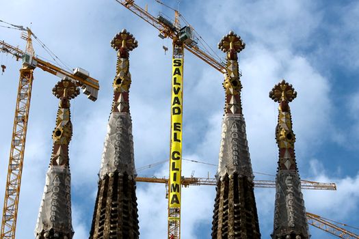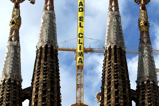 În zorii zilei, circa 20 de activişti ai Greenpeace au luat cu asalt catedrala neterminată Sagrada Familia – opera arhitectului catalan Antoni Gaudi, devenită emblema Barcelonei – şi au arborat o banderolă de mari dimensiuni în culorile galben şi negru, cu inscripţia „Salvaţi clima”, pe o macara din apropierea clădirii.
