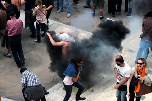 La Atena, pe numeroase pancarte purtate de manifestanţi era scris mesajul: „Bogaţii să plătească pentru criză”, în timp ce altele criticau UE şi Fondul Monetar Internaţional (FMI). Aceste instituţii au determinat Guvernul grec să implementeze măsuri de austeritate draconice în schimbul unui plan de salvare a Greciei de 110 miliarde de euro pe trei ani.