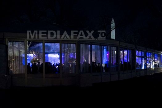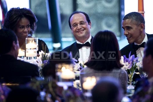 După ce au făcut o plimbare prin curtea de nord, François Hollande şi soţii Obama s-au îndreptat către saloanele Casei Albe, după care au participat la un „dineu de stat” alături de 300 de persoane, într-un cort uriaş, ridicat în grădină.
