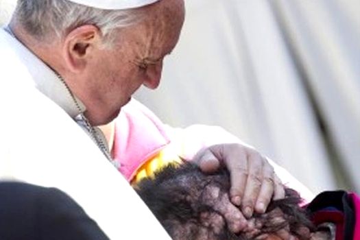 Prezent în Piaţa Sf. Petru pentru audienţa sa publică, Papa s-a oprit să binecuvânteze un bărbat desfigurat de o boală genetică. Suveranul pontif l-a sărutat şi l-a îmbrăţişat pe credincios, imaginile făcând înconjurul lumii.