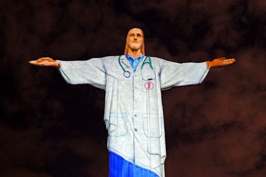 Statuia ce îl înfăţişează pe Iisus Hristos din Rio de Janeiro a fost luminată pentru a parărea îmbrăcată în uniformă medicală în duminca de Paşte. În plus chipurile unor medici au apărut pe celebra statuie alături de „Obrigado” cuvântul portughez pentru mulţumesc.