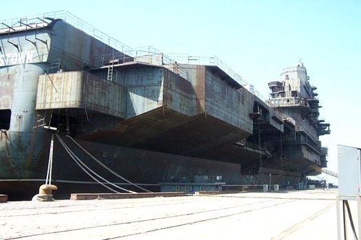 Nava s-a numit iniţial Riga şi nu a fost finalizată, potrivit publicaţiei Popular Mechanics. Construcţia a început în anii ’80, iar în 1991, când s-a dizolvat Uniunea Sovietică, portavionul era finalizat în proporţie de 68%.