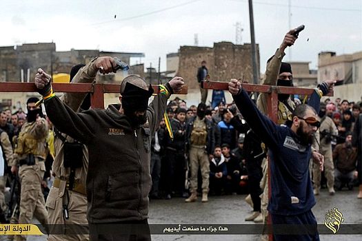 Alte imagini arată crucificarea a doi bărbaţi dintr-un oraş sirian, Raqqa, aceştia fiind acuzaţi de furt.