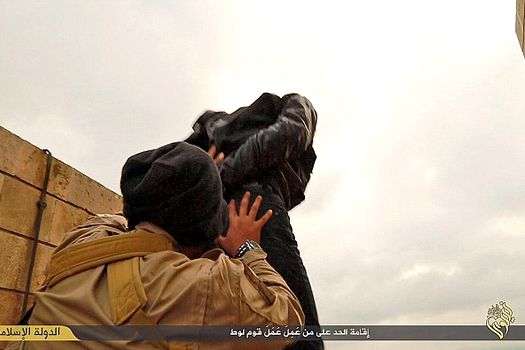 Do bărbaţi sunt aruncaţi de pe o clădire din Ninive (Irak), fiind pedepsiţi în acest mod violent pentru „păcatul” de a fi homosexuali, informează dailymail.co.uk.