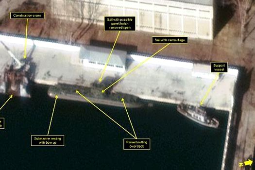 Imaginile din satelit au arătat două obiecte circulare mari care ar putea fi secţiuni ale submarinului, indicând tototdată continuarea testelor pentru un mecanism de lansare a rachetelor balistice dintr-un submarin.