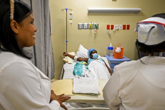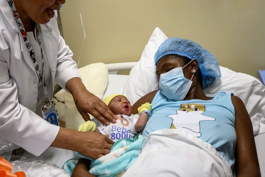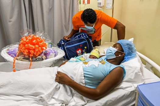Bebeluşul nou-născut Damian Ferrera stă lângă mama lui Damaris la Spitalul Altagracia, din Santo Domingo, Republica Dominicană
