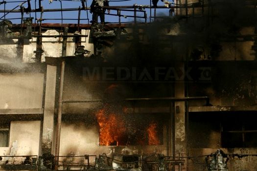 Protestatarii au negat că ei ar fi declanşat incendiul, precizând că acesta a izbucnit în interior.