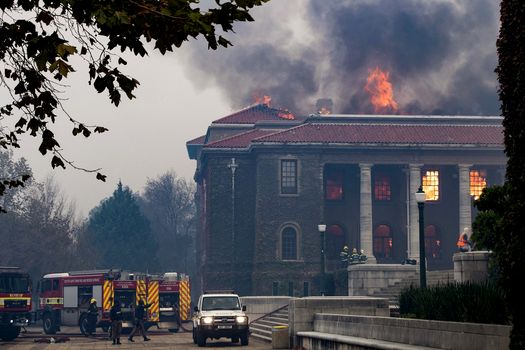 Incendiul a început duminică dimineaţa devreme pe versanţii vârfului Diavolilor forţând studenţii Universităţii din Cape Town să evacueze campusul, în timp ce flăcările au cuprins mai multe clădiri din campus, inclusiv o bibliotecă care conţine cărţi istorice importante.