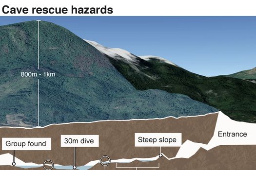 Corespondentul BBC, Jonathan Head, a explicat că „prima parte a operaţiunii de salvare, prin pasajele înguste şi scufundate, este şi cea mai dificilă, implicând perioade lungi subacvatice pentru copiii care nu au mai folosit niciodată echipament de scufundări”.