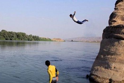 În Fallujah, câţiva bărbaţi sunt înfăţişaţi pescuind, în timp ce alţi jihadişti sunt fotografiaţi sărind în Râul Tigru.